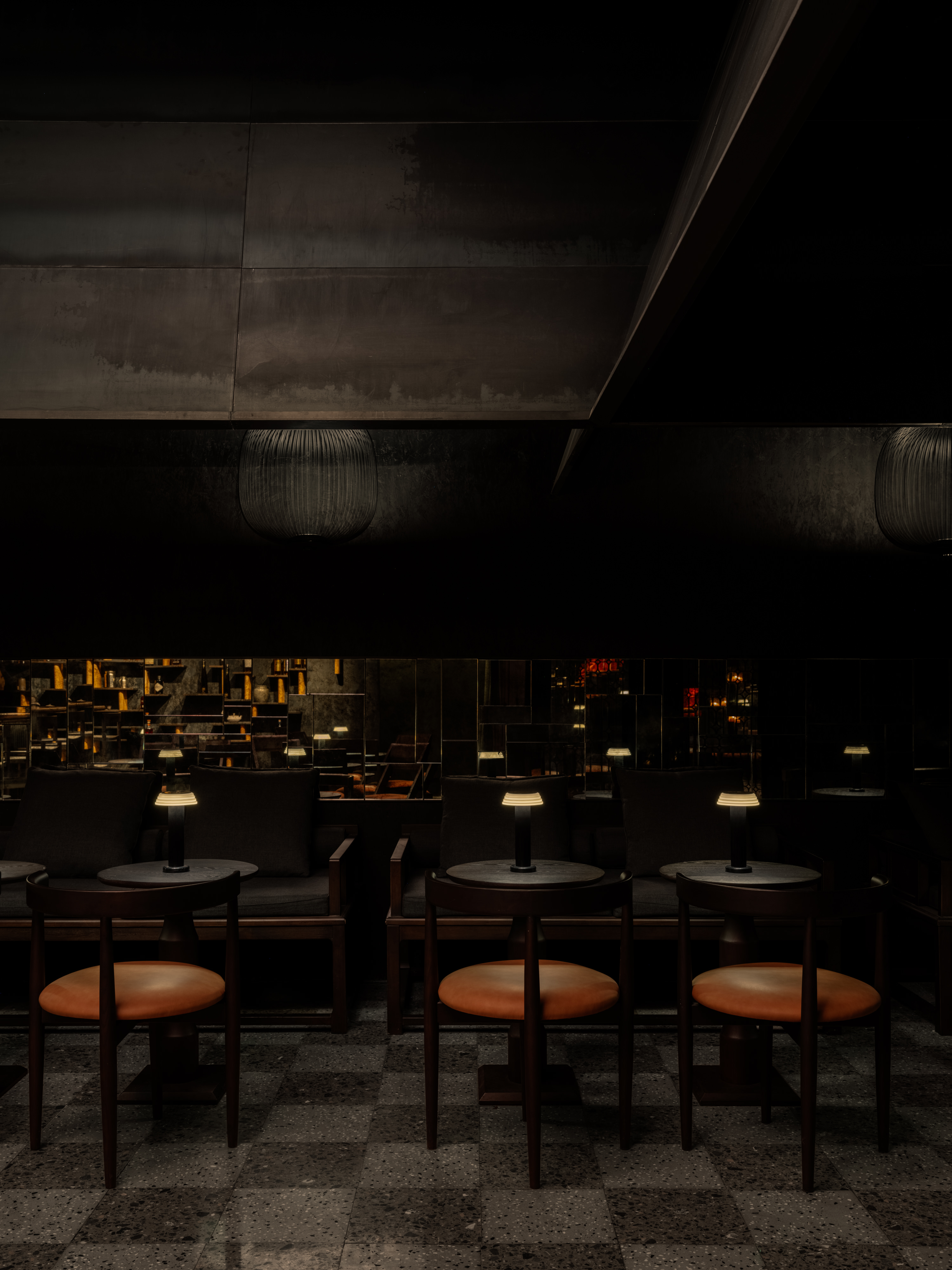 Located within the podium of a mix-use commercial tower in the heart of Chengdu, the project positions itself as a night-time cocktail bar informed by tea culture through spatial order, atmosphere, and patterns of social interaction.