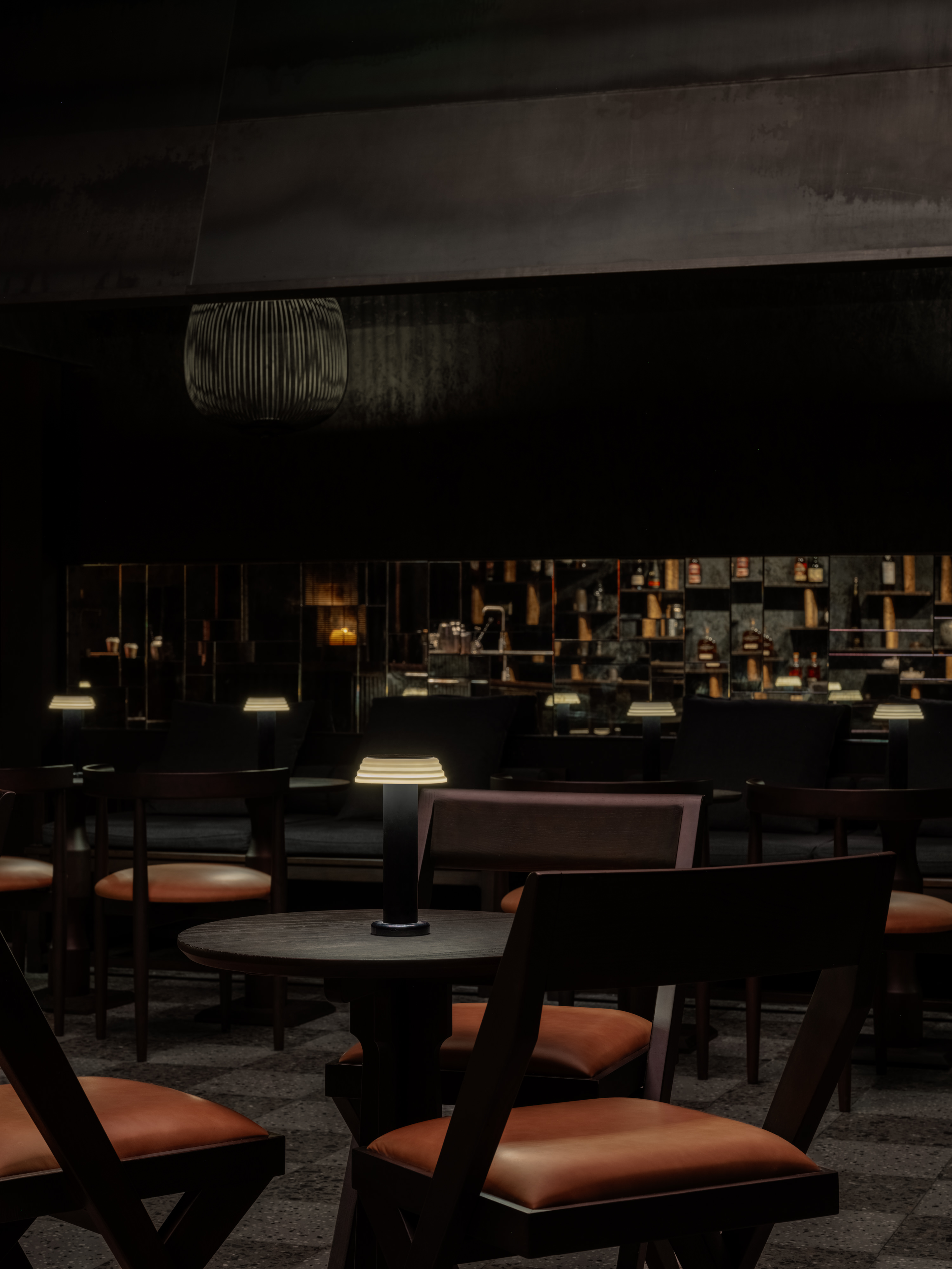 Rooted in Taiwanese hospitality culture, a bar counter is devised to prioritise human connection. It greets the guests upon entrance and guides the circulation towards the open seating area. Two hidden modular bar carts can be detached from the counter’s short end. The mobile cocktail carts can be rolled freely across the space, introducing movement and allowing the presence of mixologists to extend beyond the bar, encouraging genuine and tailored interactions. Thus, organically enables the space to subtly recompose itself over the course of an evening.
