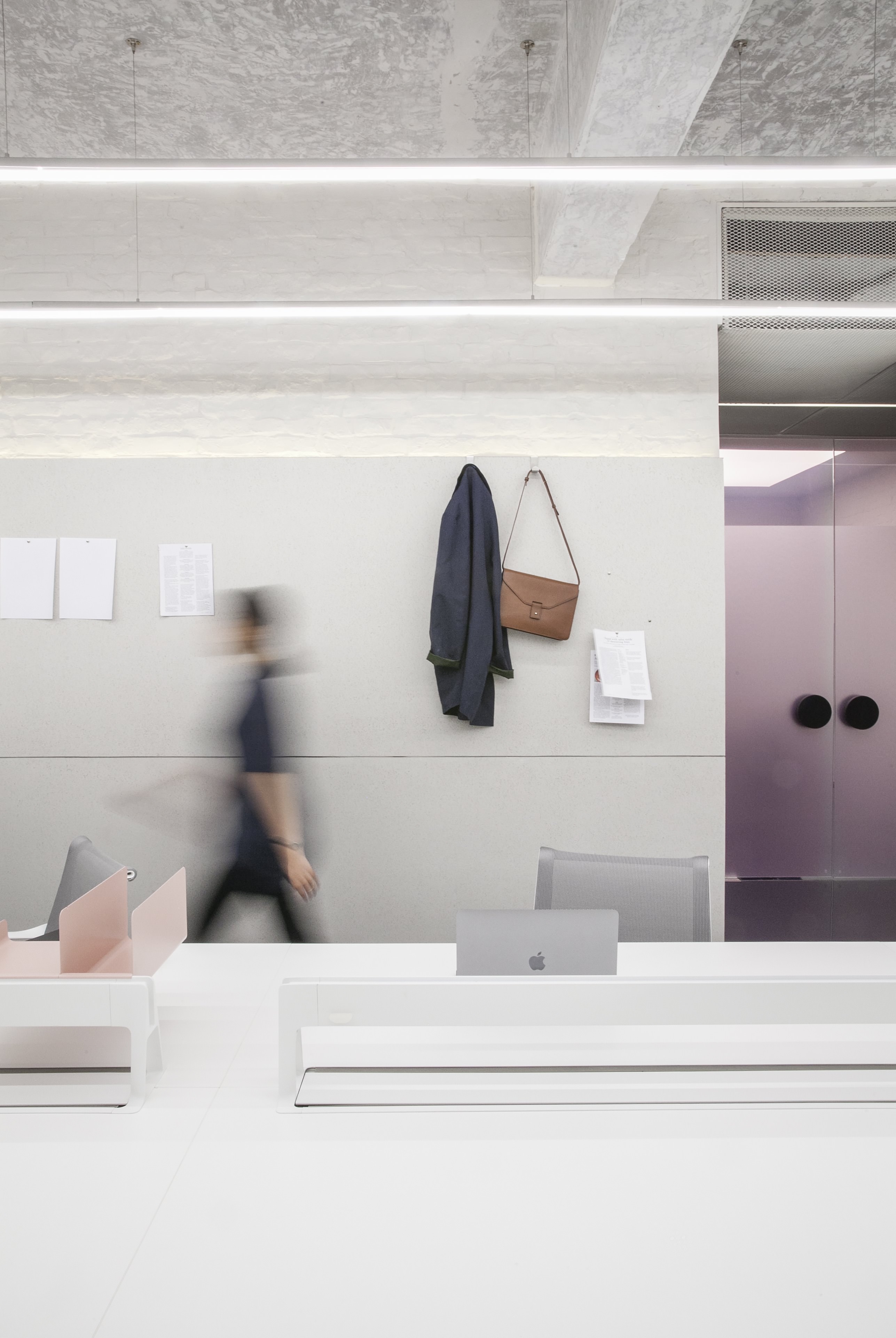 The 23m² self-contained office comprises of 7 workstations laid out against the perimeter of the room. Both spaces utilised stretch ceiling system mimicking soft rays of daylight washing down into the space.