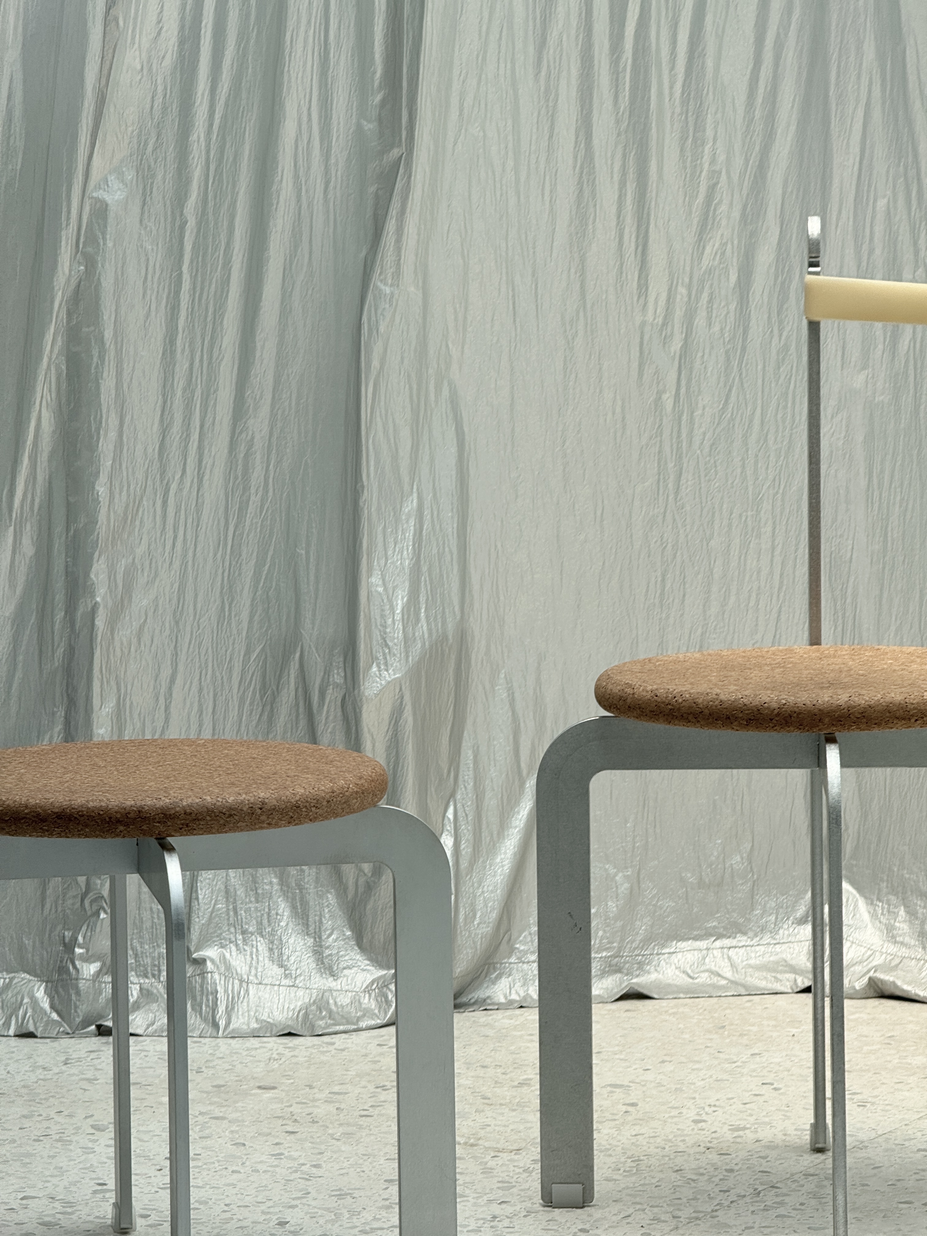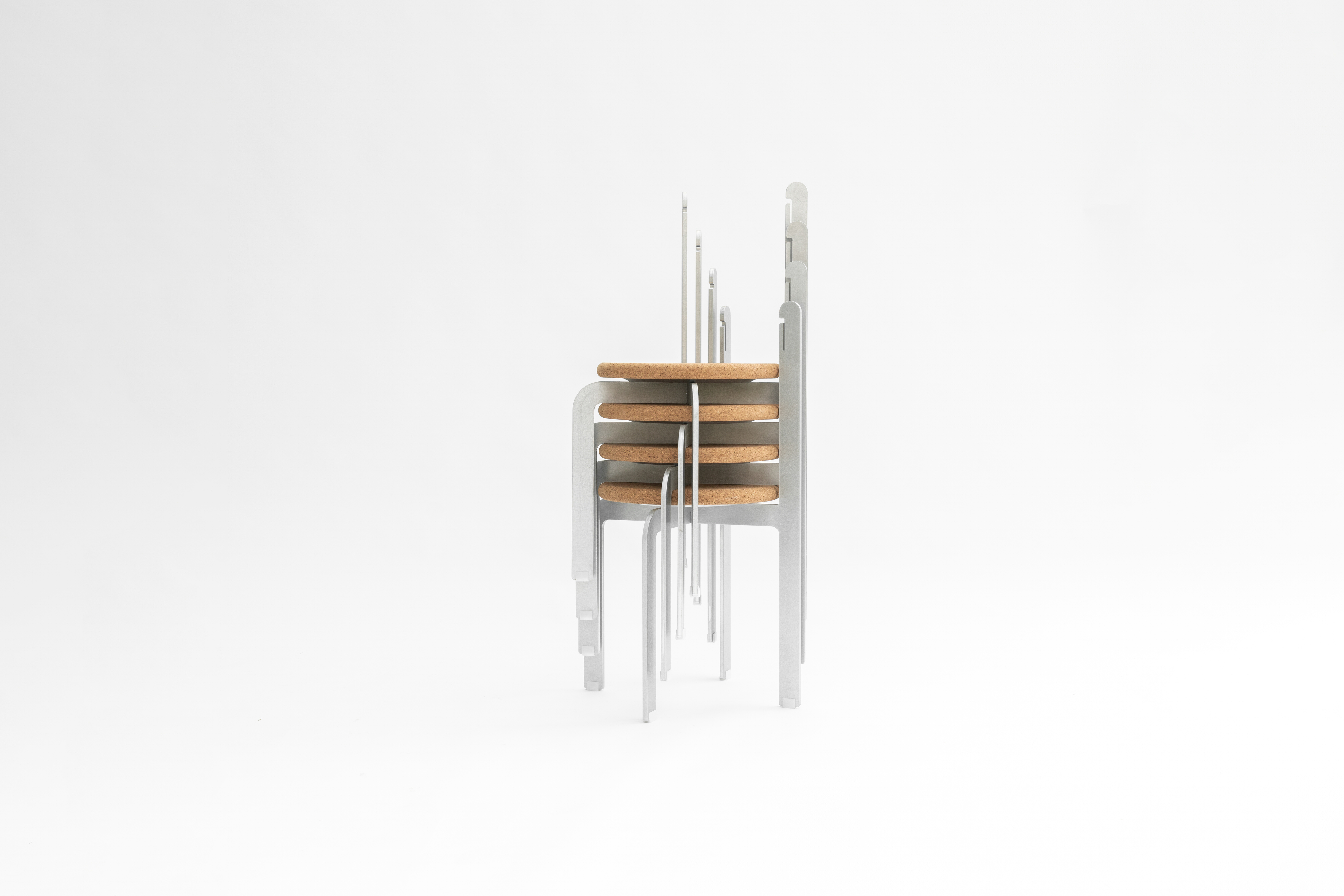 Like the chairs found in the hutongs, materials are selected for their inherent properties—Aluminium for strength and durability, rubber for its elasticity, and cork for its warmth to the touch. The A.R.C. Chair balances these elements in a simple, elegant, and practical design.
