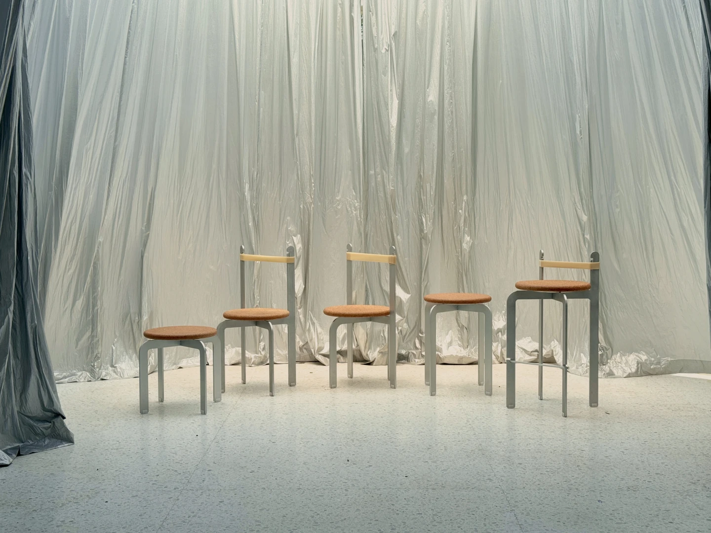 The A.R.C. Short for Aluminium, Rubber and Cork was inspired by objects encountered in the Hutongs, and was best known through photographic work "bastard chairs" by Michael Wolf.